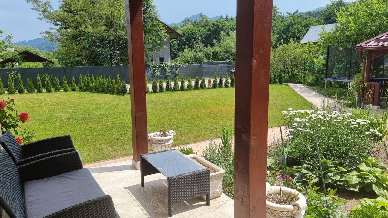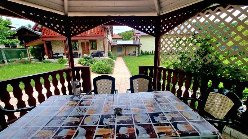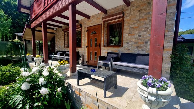 CALL +40745011804Casa compusă din 5 camere +living cu bucătărie complet utilata(masina de spalat vase, rufe , uscator de haine...) cu capacitate maxima de 12 persoane. Se poate face grătar afară la foișor. Casa se află la intrarea în Brașov dinspre Bucuresti, o locație de poveste,in mijlocul naturii lângă pădure și totuși la 2 pași de oraș. Daca aveți norocul puteți intâlni mistreți, caprioare, vulpi. Are vedere la munții Bucegi. Se află la doar 10-15 min de mers pe jos de grădina zoologică, parc Aventura și lacul din Noua. Este situată aproape de centre comerciale, telescaunul Bunloc se află la 2,5 km,piața sfatului la 5 km, Poiana Brașov la 15 km . Vila amenajată în stil rustic ofera un confort sporit,fiind departe de aglomerația și zgomotul urban. Liniștea și aerul curat de pădure vă oferă un concediu de neuitat.